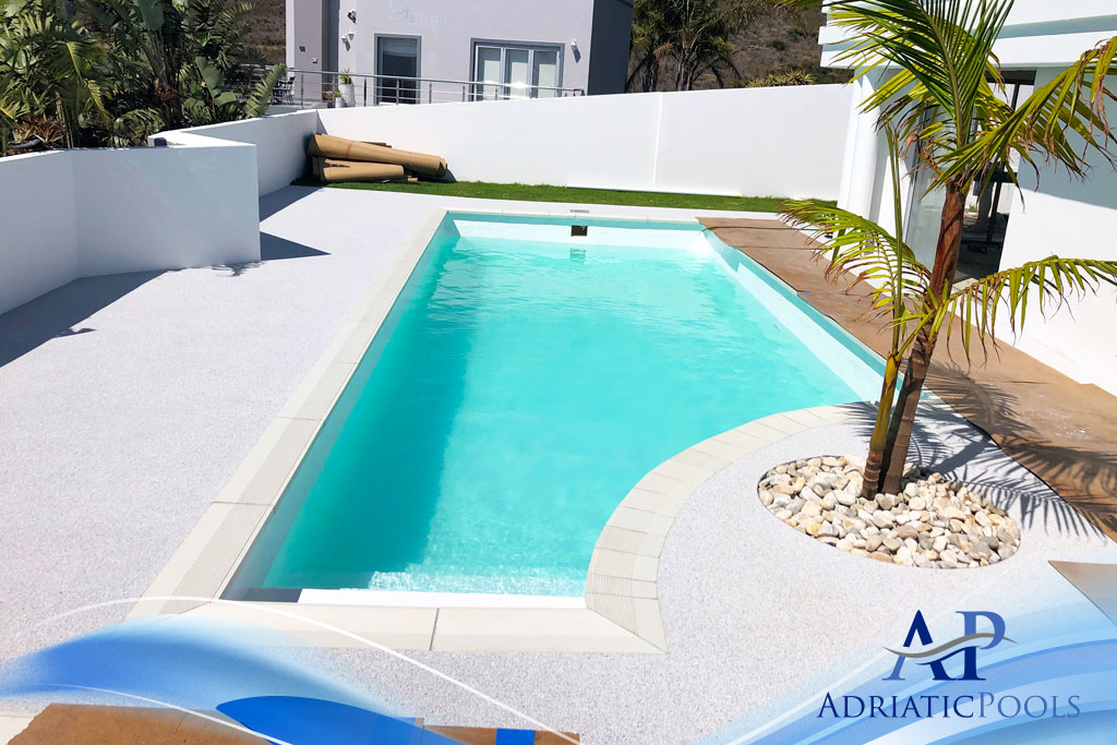Drained pool water into storage bladders. Applied fiberglass lining to the existing pool. Applied new tissue mosaics around the top edge. Finally applied the final topcoat as the finish colour.